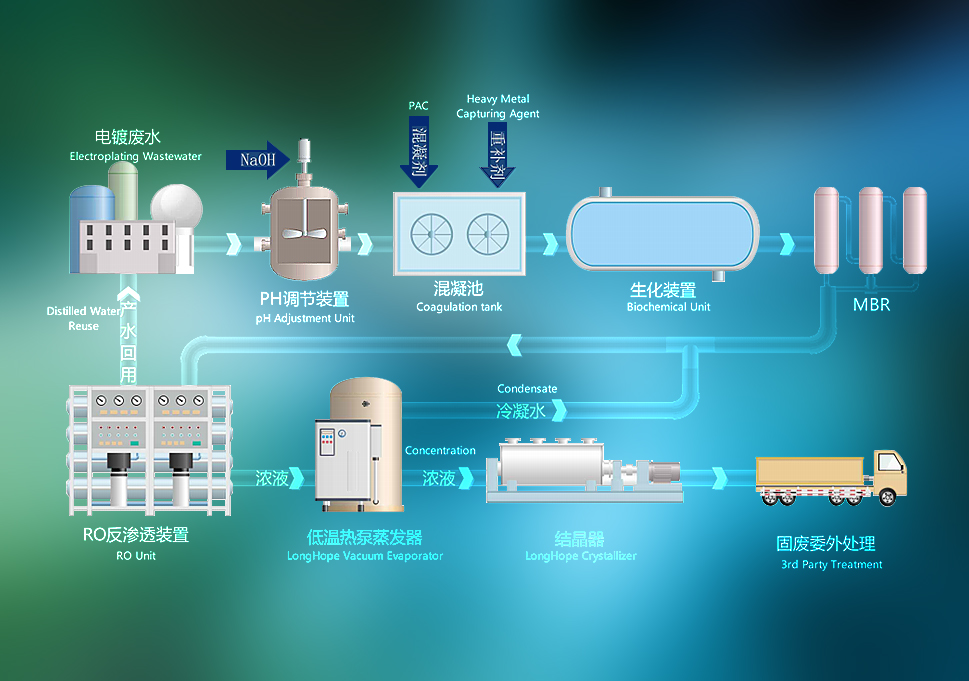 本公司研發(fā)的熱泵驅(qū)動(dòng)<無熱源>蒸發(fā)器可顯著減少工業(yè)廢液處置費(fèi)用,可獲取85-95%的蒸餾液回收再利用,小部分的濃縮液(約占原液的5-15%)富集了鹽分或重金屬必須另外處置。在材料表面處理行業(yè)